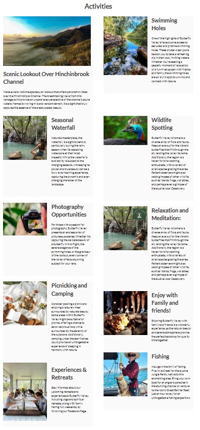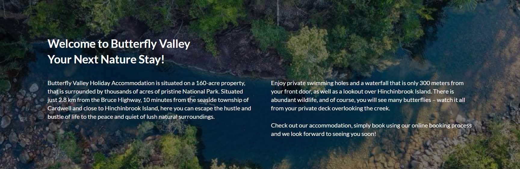 BOOKINGS: https://www.butterflyvalley.com.au/